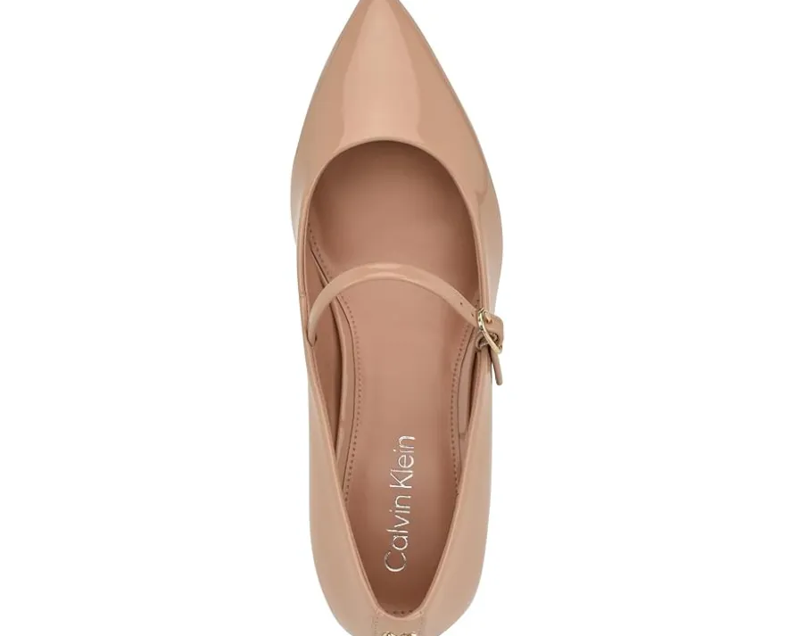 - Make a statement look with fashioned splendor wearing the Calvin Klein® Leora Pumps. The pointy toe footwear features polyurethane upper with adjustable buckle closure on the midway strap and block heels.