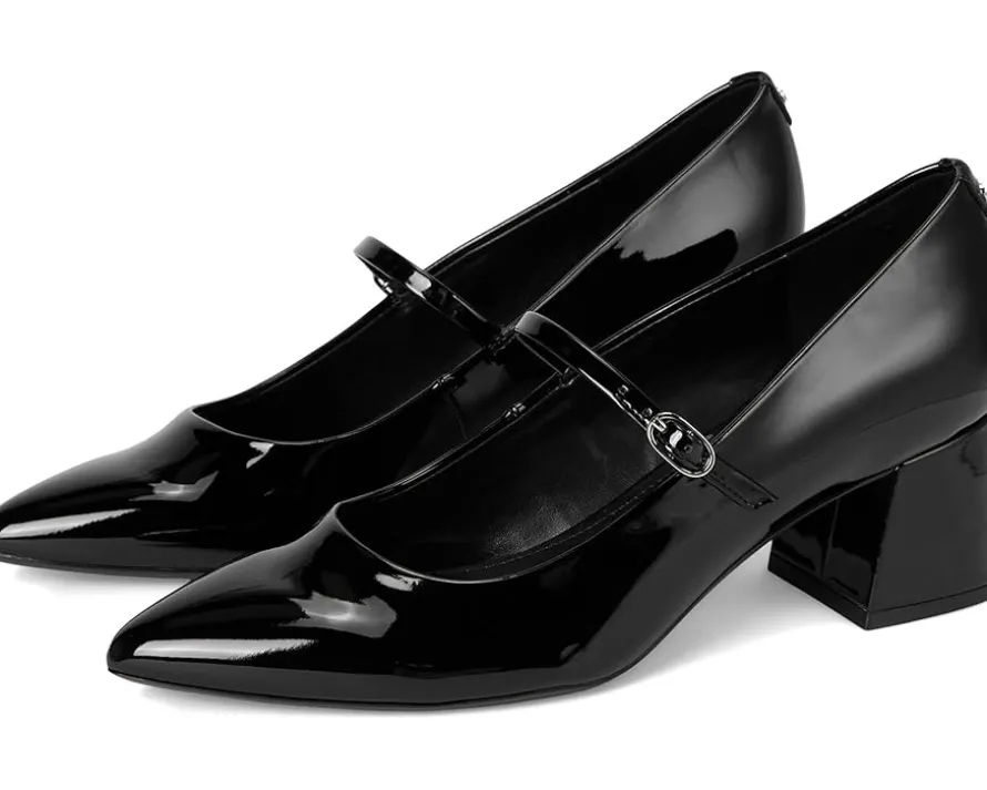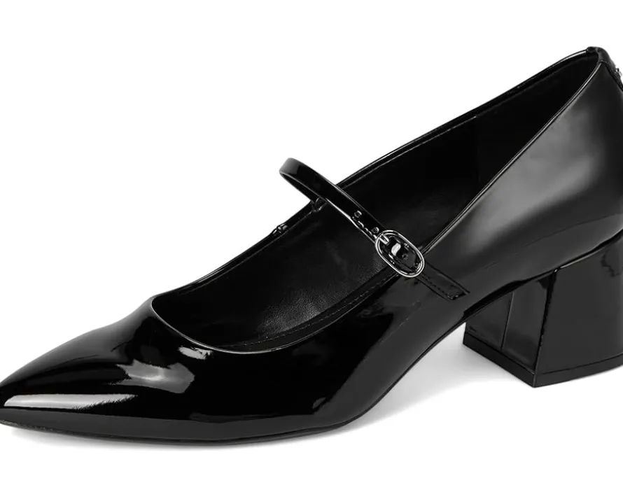 - Make a statement look with fashioned splendor wearing the Calvin Klein® Leora Pumps. The pointy toe footwear features polyurethane upper with adjustable buckle closure on the midway strap and block heels.
