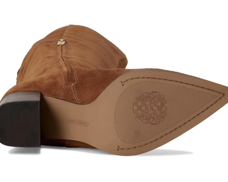- Step up, stand tall, and own the spotlight wearing the Vince Camuto® Lilibet Knee High Boot! Designed with a sleek leather upper, this boot blends timeless sophistication with modern edge, making it your ultimate day-to-night essential. The pointed toe elongates your silhouette, while the sturdy block heel offers confidence-boosting height without compromising on comfort. A smooth fabric lining and cushioned polyester insole keep every step effortless, while the rubber outsole ensures lasting traction. The streamlined knee-high shaft adds a chic finish, perfectly complementing everything from tailored skirts to skinny denim. With its zippered side closure for easy wear, the Lilibet is your go-to boot for polished workdays, elevated evenings, and everything in between.