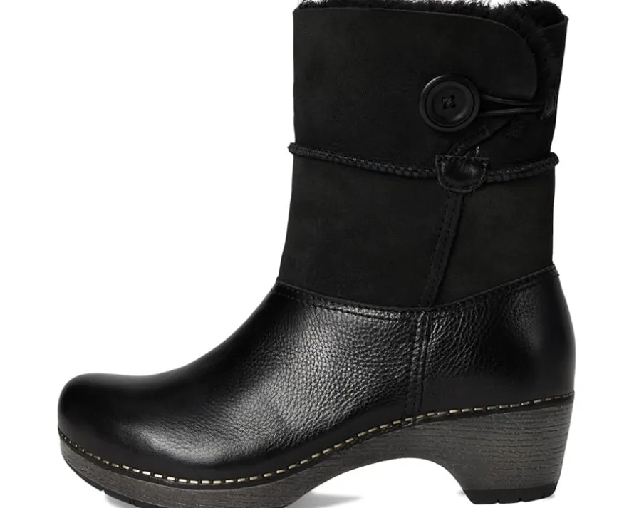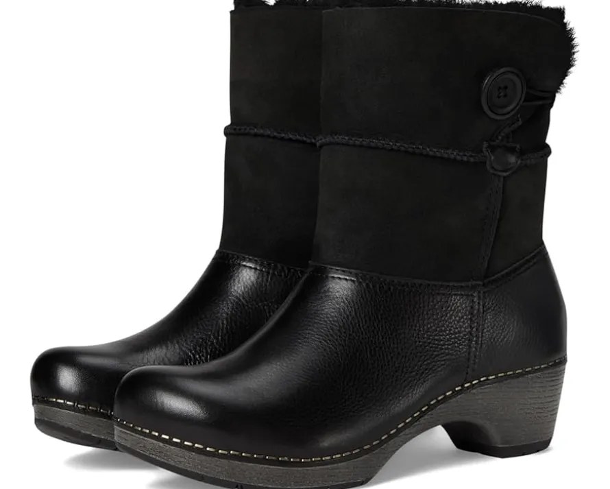 - You’ve never seen a winter boot quite like this. Dansko® Lillith combines durable leather with soft nubuck. The shaft is crafted from real shearling for added warmth and luxury, while a cozy, warm lining in the toe box keeps you comfortable all day, no matter the weather. The high-quality nubuck leather upper is treated with 3M Scotchgard™ for stain resistance. The round-toe boots come with breathable suede sock lining, cushioned energy-return PU footbed, and lightweight BPU midsole with steel shank for supreme stability.