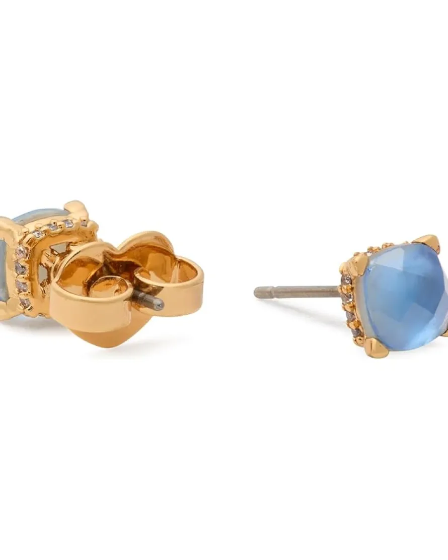 - Complete your party looks and outfits wearing the Kate Spade New York® Signature Solitaire Studs. These studs are made from brass in a gold finish. The cubic zirconia gem in the center offers an eye-catching twist while the signature spade ear clutch backs make them easy to wear and remove. These gold-finish studs are the perfect accessory for your gold jewelry collection.