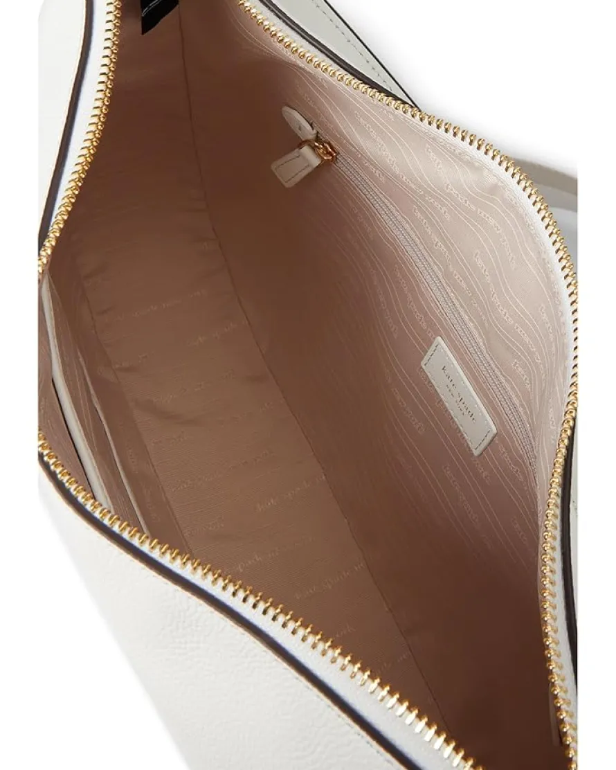- Your spacious and chic bag has arrived, carry the Kate Spade New York® Liv Large Shoulder Bag. Crafted from premium leather material and lining, this bag radiates timeless sophistication. The spacious interior with two convenient pockets keeps your essentials organized, while the secure zippered closure ensures everything stays in place. Designed for versatility, the adjustable strap allows for a customized, comfortable fit.