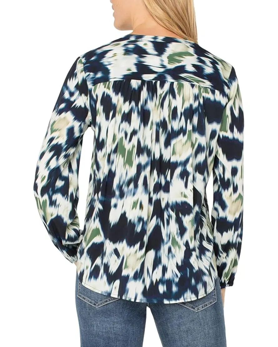 - The Liverpool™ Los Angeles Long Sleeve Button Front Shirred Woven Blouse is an eye-catching piece with vivid hues. Its versatility allows it to be dressed up or down to create the perfect ensemble for both casual and professional occasions.