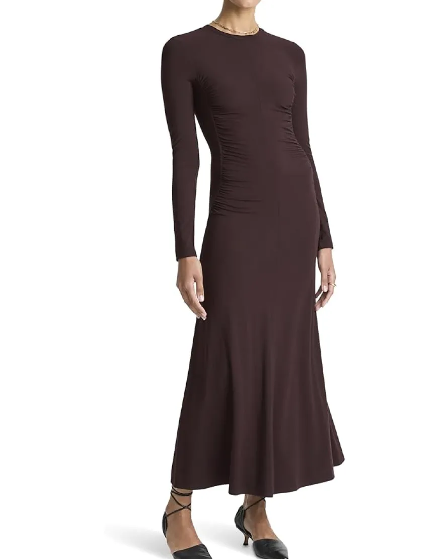 - Effortless elegance meets modern allure in the Vince® Long Sleeve Crew Curved Seam Rouched Dress. Crafted with a classic crew neck and graceful long sleeves, this fine-gauge knit dress exudes understated refinement while offering incredible versatility. The soft side ruching flatters your natural silhouette, creating a figure-enhancing drape that feels both chic and comfortable. Falling to a refined mid-calf length, it transitions seamlessly from workdays to evenings out, embodying polished minimalism at its finest. Designed with a convenient pull-on style, it ensures easy wear without compromising its sleek, tailored look.