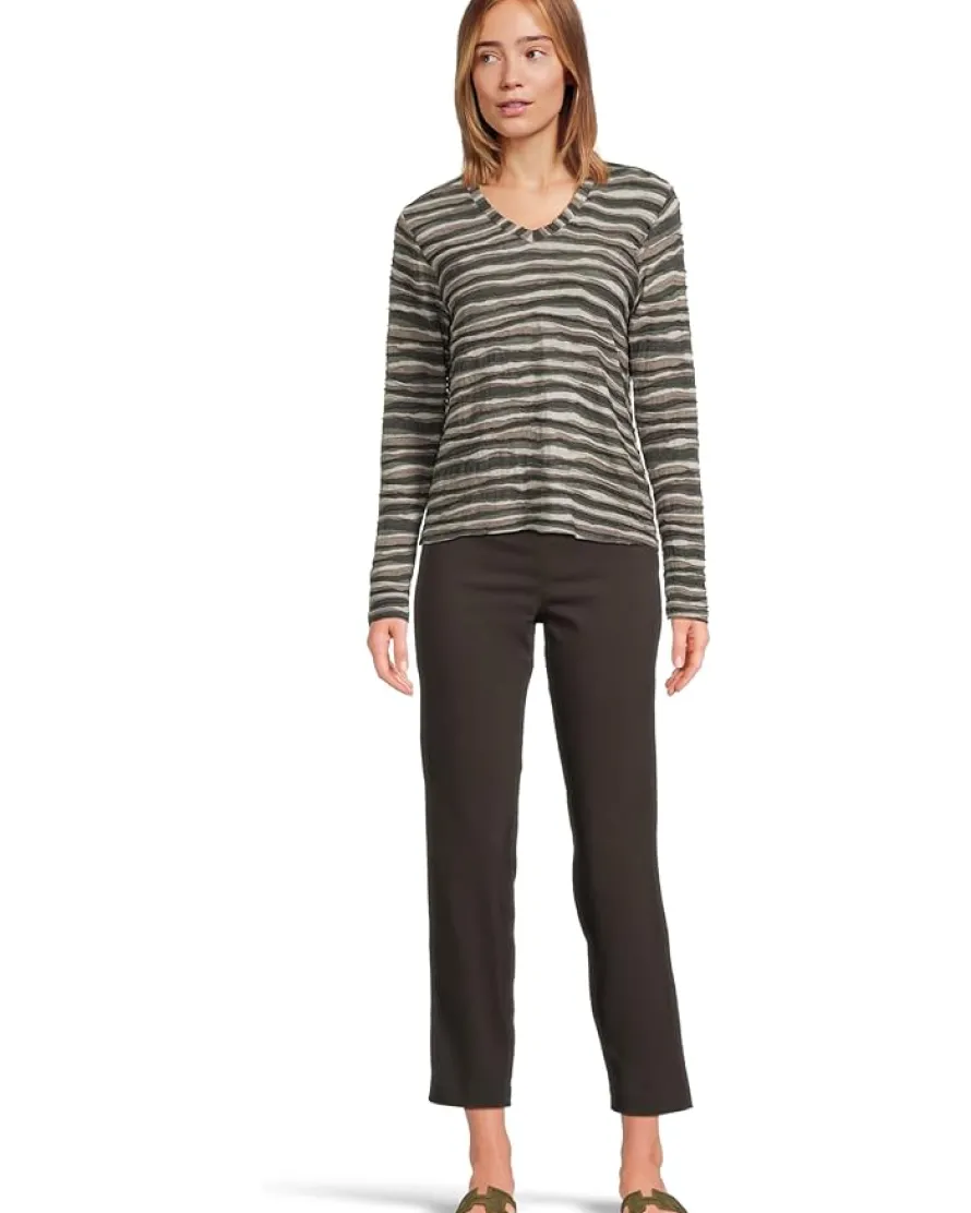 - Maintain your chic style effortlessly in the Elliott Lauren™ Long Sleeve Stripe V-neck Knit Top. Featuring a V-neckline with long sleeves and a straight hemline.