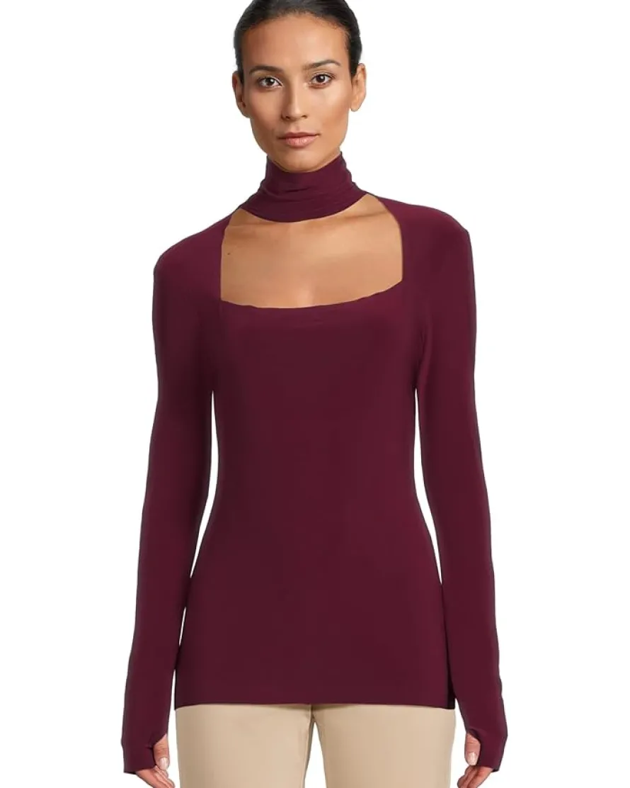 - A little black top with some spice! The Long Sleeve Sweetheart Turtle Top is a form-fitting turtleneck with cutout at chest, creating a square neckline.