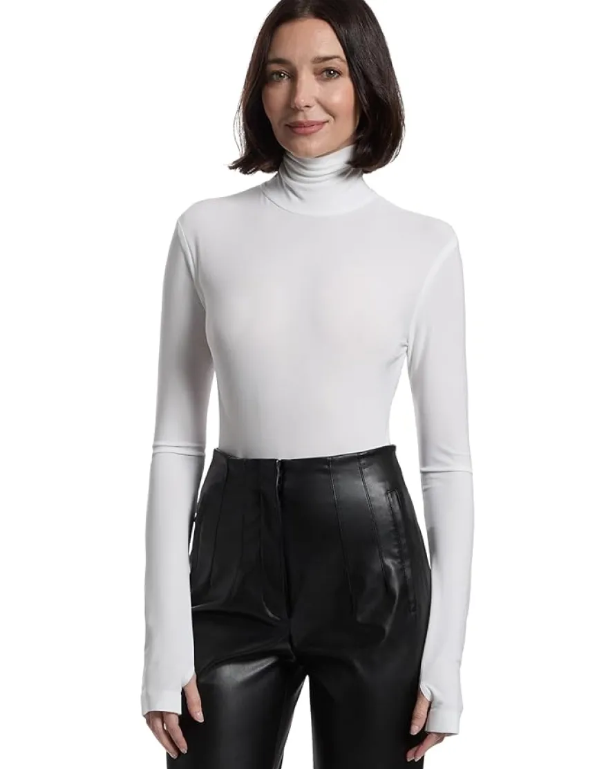 - The KAMALIKULTURE by Norma Kamali Long Sleeve Turtle Bodysuit features a mock neck and a snake print design. A concealed back zipper creates an easy wear.