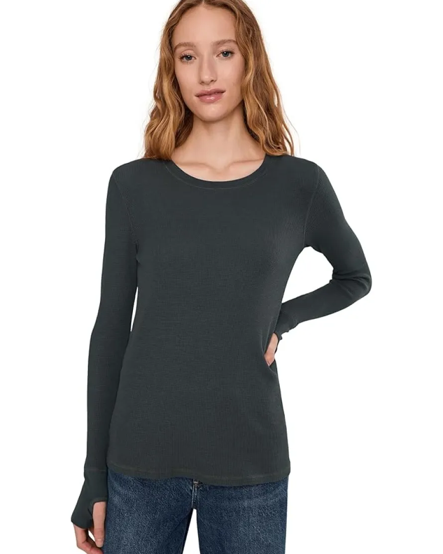 - Experience comfortable and chic vibes wearing the Mod-o-doc™ Long Sleeve With Thumbhole, Crewneck Tee. Designed for everyday casual wear, the pull-on style tee features a crew neck, long sleeves with thumbholes, and a standard-length silhouette with a slightly curved hem.