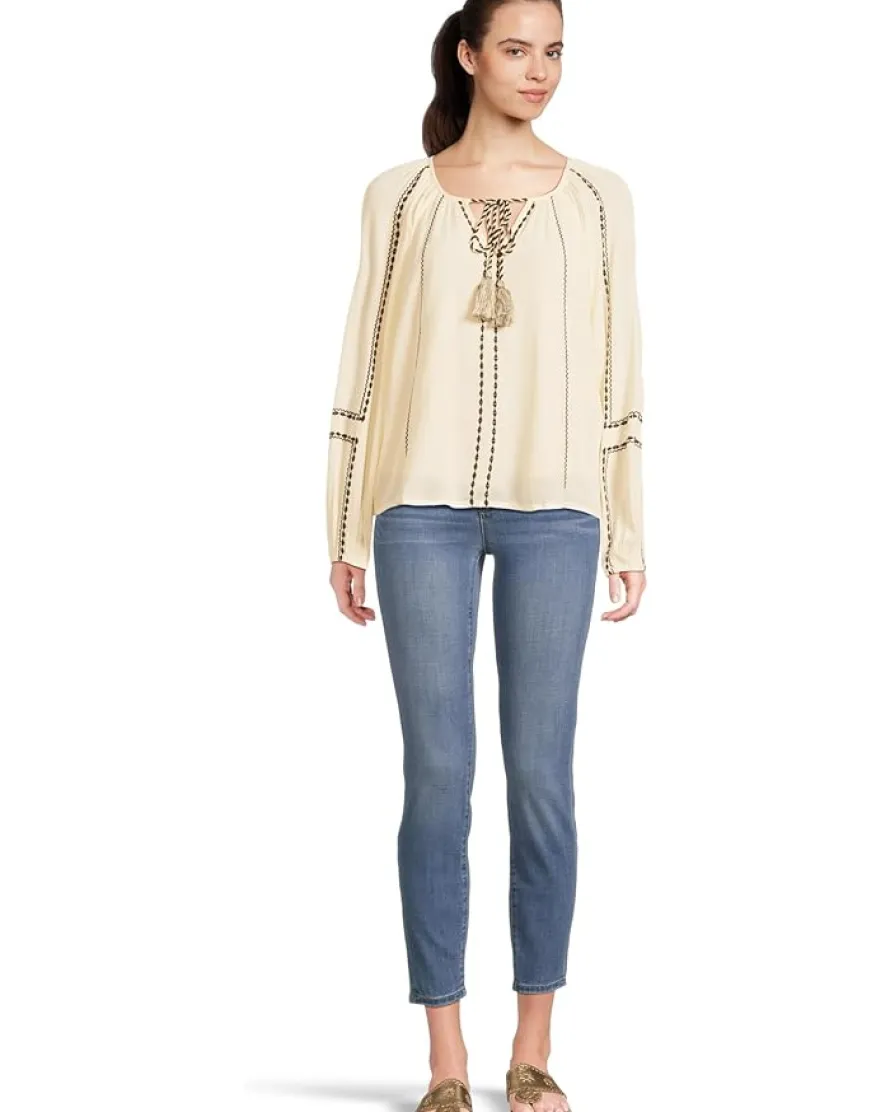 - Look effortless and chic with the Liverpool™ Los Angeles Long Sleeve Woven Raglan Blouse With Embroidery. This stylish top features embroidered pattern with a flattering fit that pairs well with your favorite jeans.