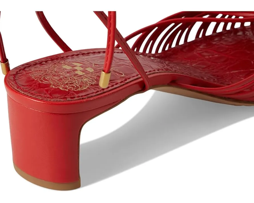 - The Vince Camuto® Lory Ankle Wrap Kitten Heel Sandals feature a strappy design that offers a stylish appeal, making them perfect to pair with your party outfits and dresses. These heeled sandals are made of a man-made upper, insole, lining, and outsole. The strappy tie closure ensures a perfect fit.