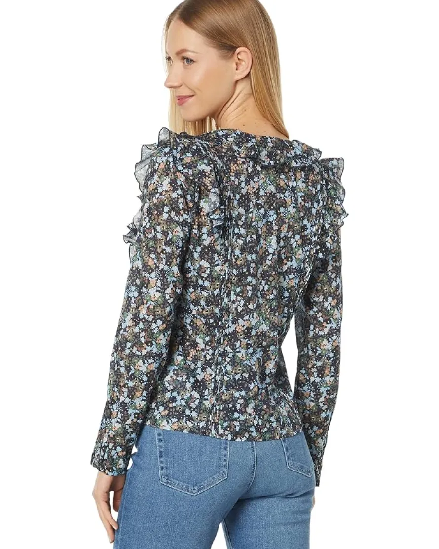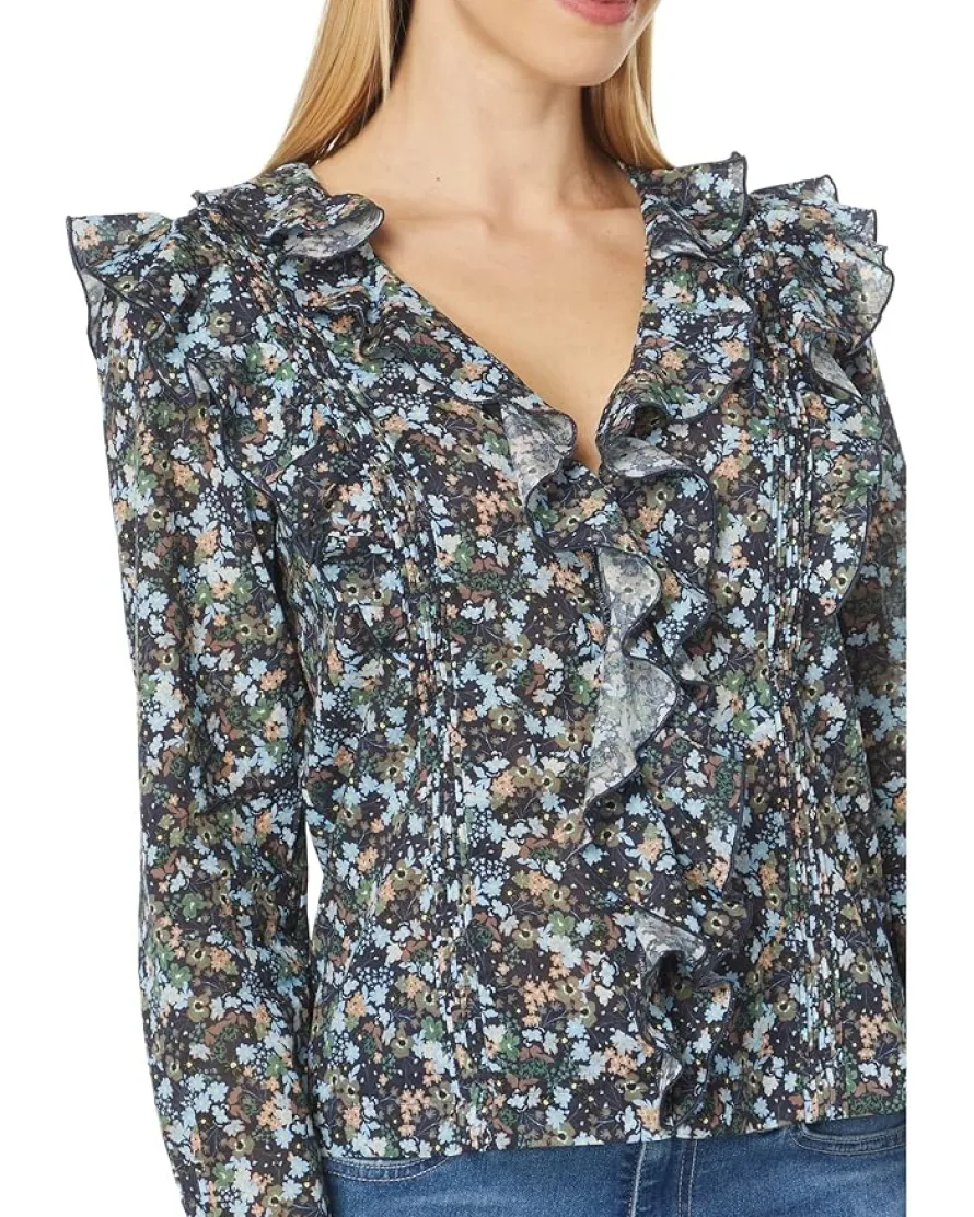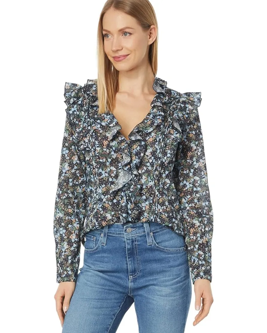 - V-neckline with ruffled detailing.