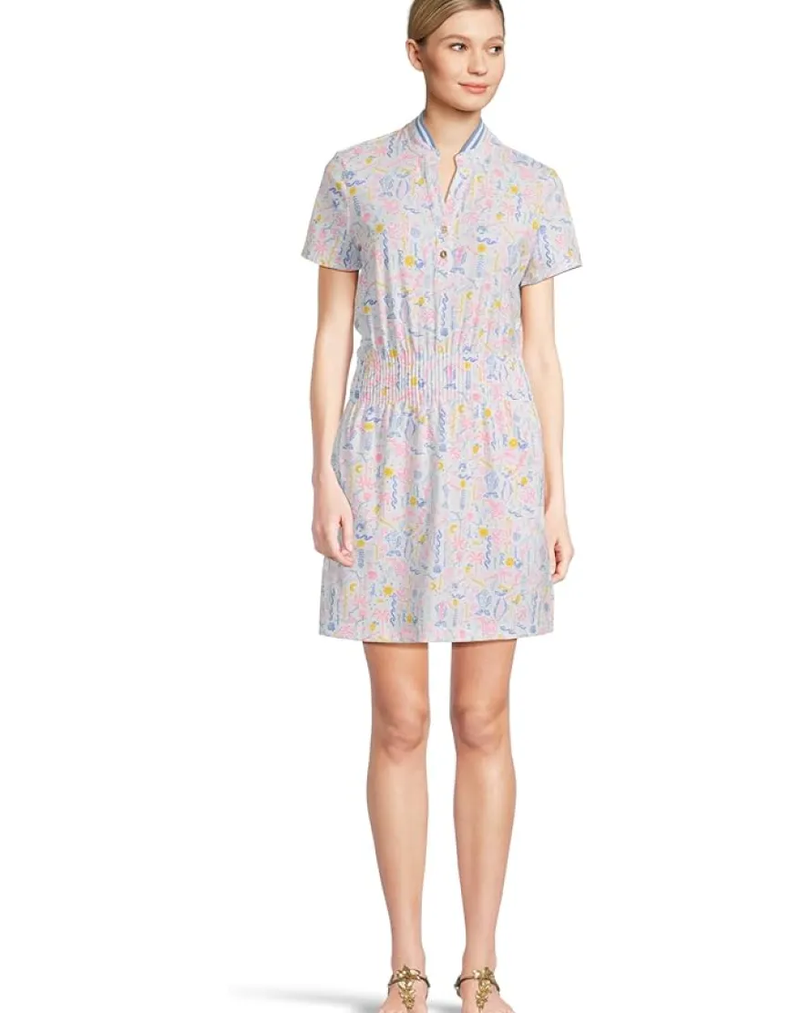 - The Lilly Pulitzer® Love Active Dress Upf 50+ blends fashion and practicality for a stylish statement look. The active polo dress features a rib collar, a half snap-button closure with gold buttons, a smocked waist detail and separate undershorts with pockets. Crafted with a UPF 50+ moisture-wicking fabric, the above-the-knee length dress is perfect for comfortable outdoor wear. The allover floral print adds style, while the side seam pockets allow easy storage for your small essentials.