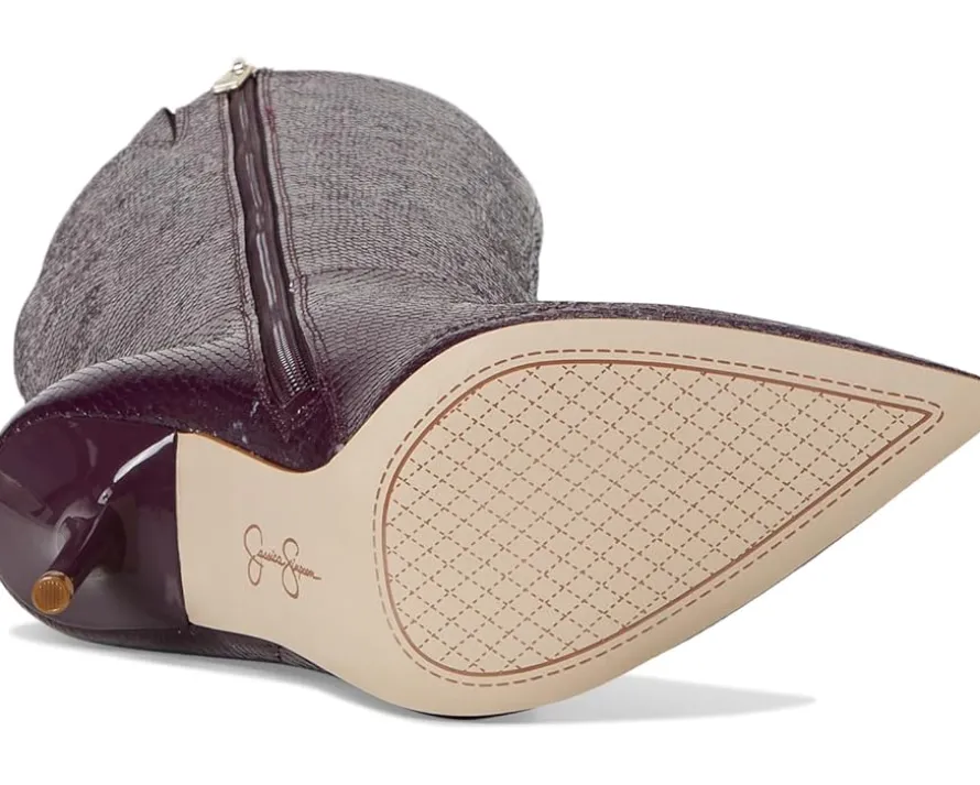 - The Jessica Simpson™ Lovienn Pointed Toe Knee Boots feature a sharp pointed toe, a stiletto heel, and a zippered side closure for wearable ease. Crafted from faux leather upper, the Lovienn boot blends glam and edge.