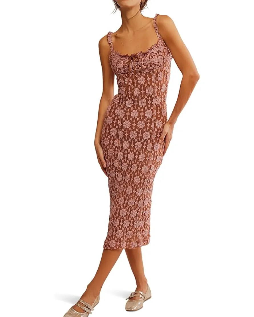 - The Free People™ Lucinda Lace Midi brings ethereal beauty to life with every delicate detail. Designed in a classic, fitted silhouette, this dreamy dress hugs in all the right places while the pencil-style shape adds timeless charm. Its floral lace embroidery weaves vintage romance into every inch, complemented by a staple square neckline for that perfect femme flourish. Ruffled shoulder straps add a flirty twist, while pleating at the bust and a dainty tie at the chest enhance the silhouette with soft structure. The lace-up back detail isn’t just a showstopper-it’s a customizable fit you’ll adore.