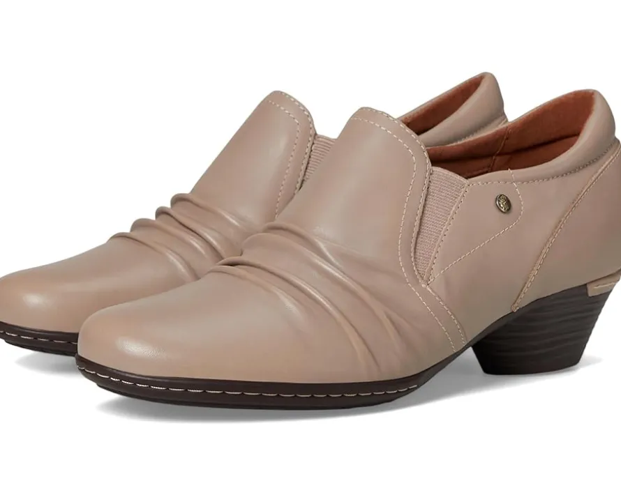 - A modern classic with a touch of tradition styling Cobb Hill® Lucy! This chic slip-on shoe features a luxurious suede upper and a round toe design for a modern look. With its pull-on lace design, you’ll enjoy easy wearability and a secure fit. The cushioned sock and PU footbed deliver exceptional arch support and all-day comfort, while the polyester lining ensures a soft touch. The synthetic rubber outsole provides superior traction and flexibility, making every step a breeze.