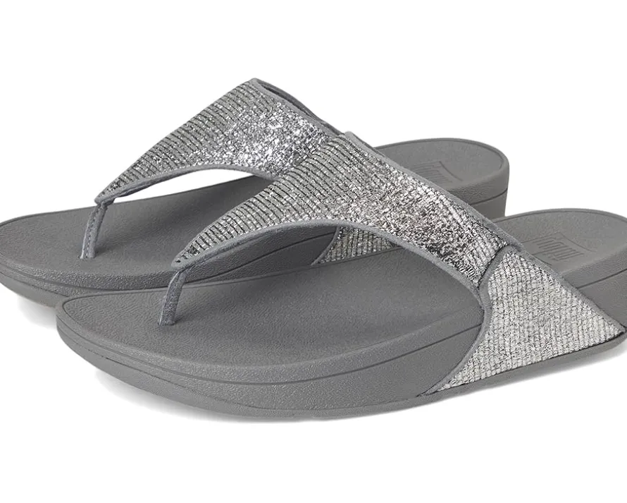- The FitFlop™ Lulu Crinkled-shimmer Toe-post Sandals are the brand’s bestselling sandals, boasting a timeless triangular vamp, softly padded polyurethane upper, and a soft microfiber toe post. Their ultra-comfortable Microwobbleboard™ midsole offers triple-density cushioning, often likened to walking on clouds. Ergonomically engineered to help optimize your body’s alignment, natural movement, & energy, they are made of a rubber insole and polyester lining. This season, crafted in a glittering crinkled-foil fabric, these toe-post sandals are an irresistible mix of shimmer and texture. Their tonal piping adds to their style. Offering natural arch support, these sandals are grip-suited to everyday use/road tread. Simple but glitzy, these slide sandals are APMA-accepted and equally good whether you’re doing daytime glamour or headed to a party.