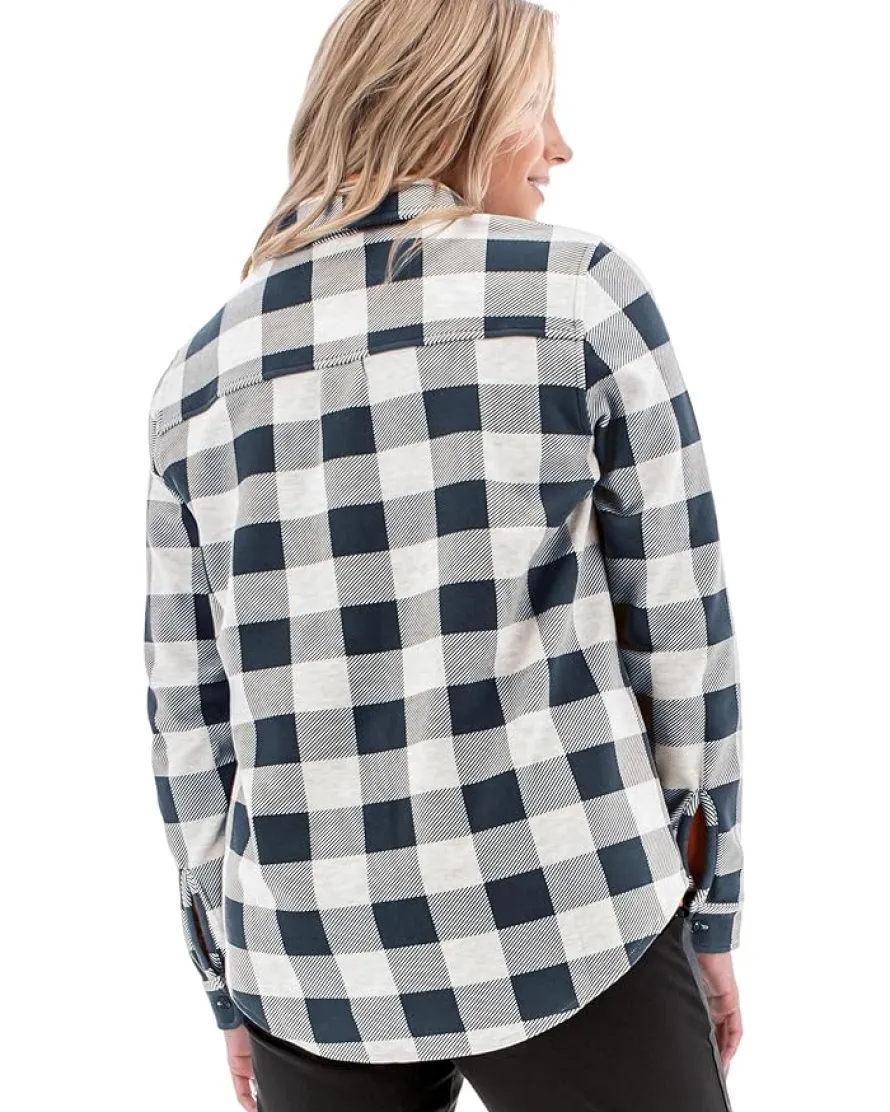 - Keep it casual yet chic while you dress up in the Aventura® Clothing Luscious Plaid Shirt designed in a boyfriend fit and offers a comfortable feel. The knit plaid pattern shirt is styled with a collared neck, full-buttoned placket on the front, long sleeves, with buttoned cuffs, and patch pocket on the left chest.