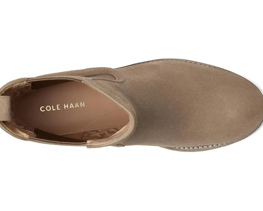 - The Cole Haan® Lyndon Waterproof Chelsea Booties present a classic silhouette with streamlined form and function for every occasion. Crafted in quality leather uppers with a waterproof coating and systematic layers of proprietary cushioning compounds, these softly pad each step. The full rubber outsole is for added grip and traction, while the block heel detail elevates the height. Plus, the ankle pull tab allows easy donning & doffing.