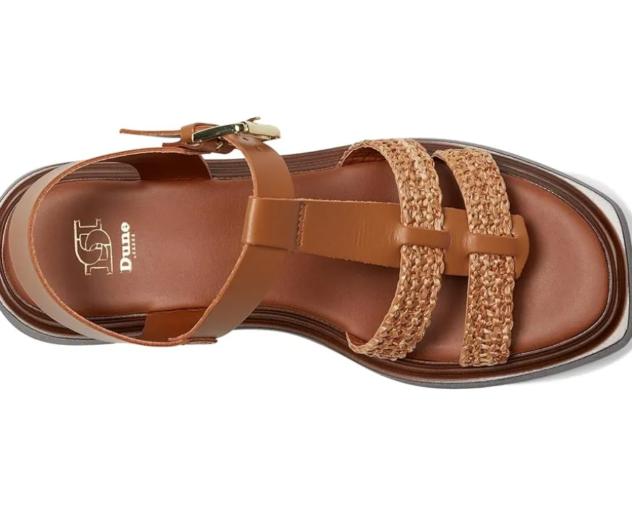 - The quiet luxury of comfort: Dune London® Lyons-where everyday sophistication is meticulously crafted. Designed for style seekers who crave both fashion and function, these statement sandals feature a premium leather upper with intricately woven straps, blending texture and timeless appeal. The square-toe silhouette adds a modern edge, while the buckle closure ensures a secure, customized fit. Set atop a platform wedge heel, Lyons delivers a boost of height without compromising comfort, thanks to the EVA insole and supportive synthetic rubber outsole.