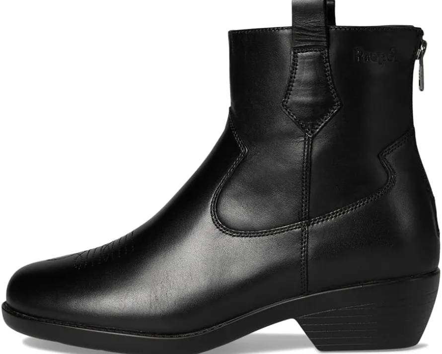 - Wear boots that make you feel great inside and out. The Propet® Maisie bootie features a soft full grain leather upper with western accent stitch on the toe and a back zipper closure. Inside is the most cushioned insole Propet offers with the Durocloud® ETPU foam that offers a high level of rebound in each step. The TPU outsole is a supportive and comes with a solid block heel for a classic dressy look. This styles features footbeds that can be removed to accommodate custom orthotics and the Scotchgard™ protective treatment makes the boots water repellent and resist stains.