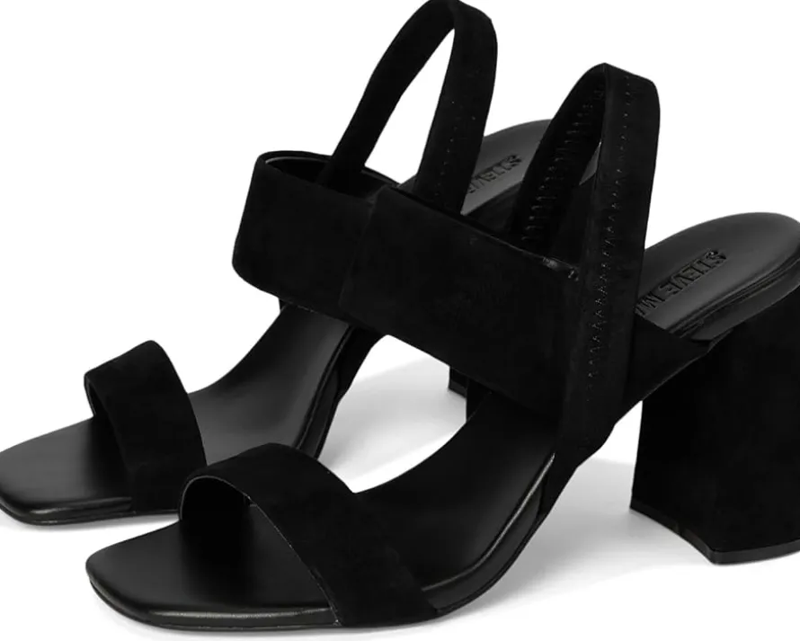 - Make a bold statement. The Steve Madden® Marbell heels: Where comfort meets cutting-edge design. Featuring a luxurious suede upper and a trendy block heel, these versatile heels are perfect for strutting your stuff from day to night. The chic straps and open-toe design add a touch of elegance, while the elasticized backstrap closure ensures a snug, comfortable fit. With a durable synthetic rubber lining and outsole plus a cushioned rubber insole, Marbell brings both comfort and fashion.