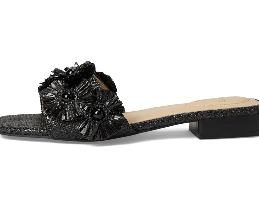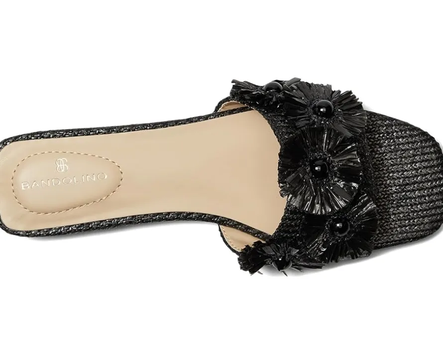 - With a sleek one-strap silhouette and an eye-catching flower detailing on the polyurethane upper, the Bandolino® Marcell Sandal makes a perfect wardrobe staple. The slip-on style sandals feature a polyurethane lining and a foam footbed. Plus, the block heel adds a striking detail to your look.