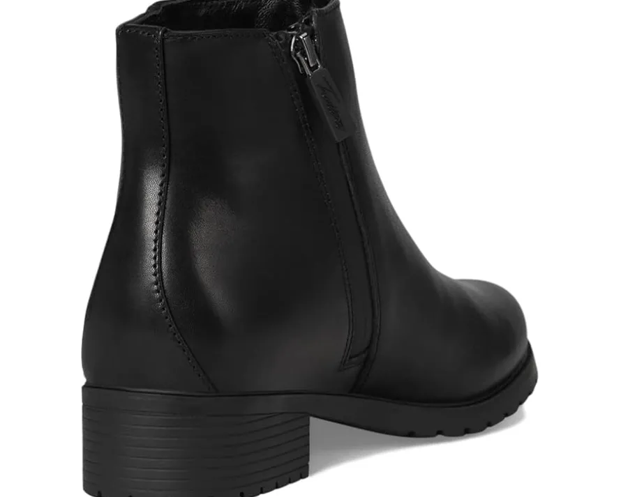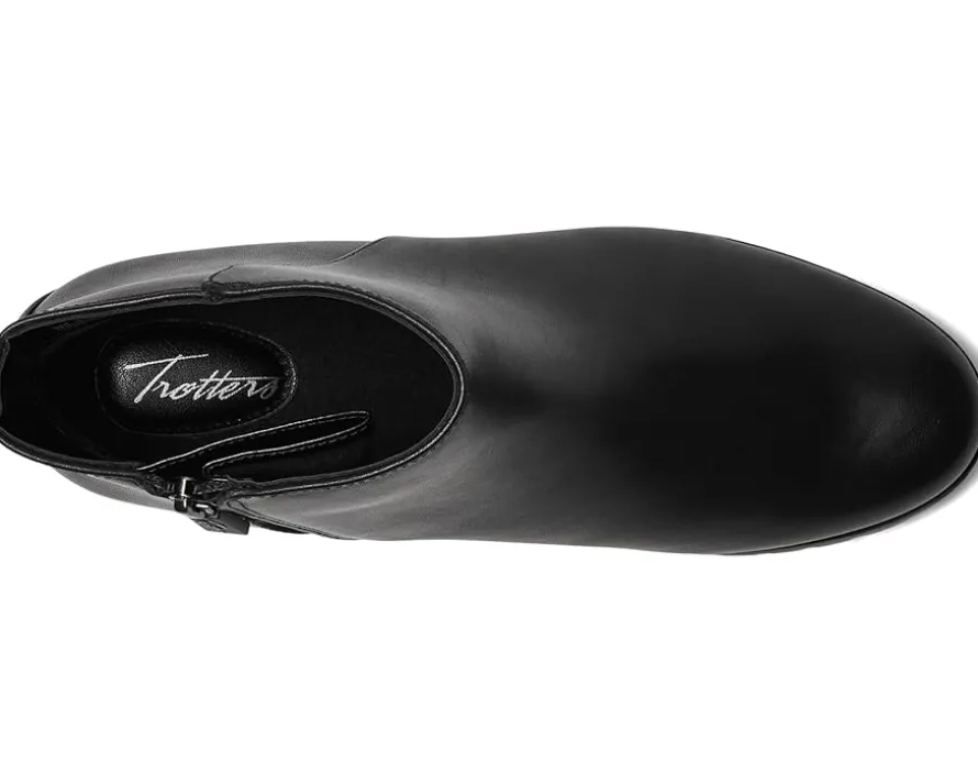 - The Trotters® Margo boots offer simple and clean styling with a waterproof soft supper leather upper and a lug rubber outsole for comfortable walking. These ankle boots feature a zippered side closure for easy on and off and the interior is lined in polyester and has a removable cushioned memory foam footbed with arch support. These heeled leather boots keep your feet comfortable, dry, and protected.