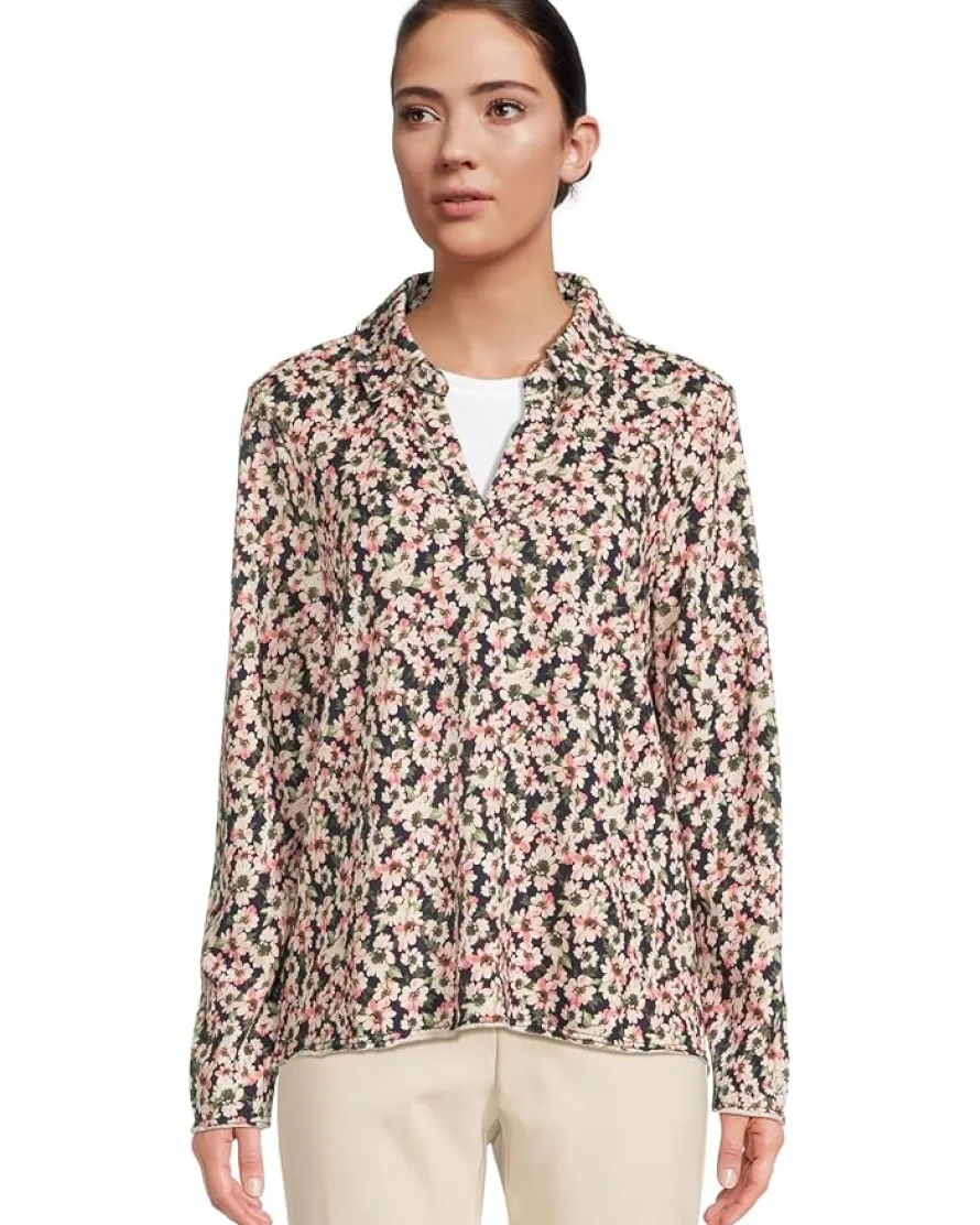 - MARINA DEL MAR COLLECTION: Spend every day on cloud nine in ultra-soft styles that inspire effortlessly luxe outfitting. Each item in the collection features unique variations in finishes, adding extra character to each piece. The Tommy Bahama® Marina Del Mar Tidal Bloom Popover top features a collared V-neckline, long sleeves, and raw edge trim details along the hem. The vibrant floral print will instantly brighten up any outfit.