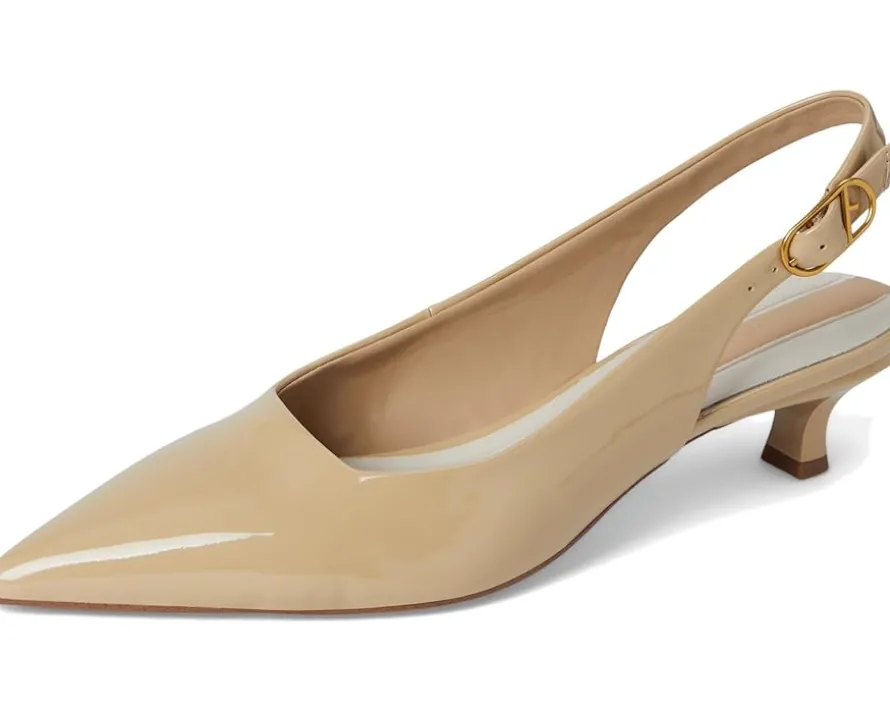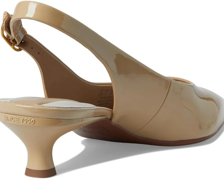 - Slingback strap with adjustable buckle closure.