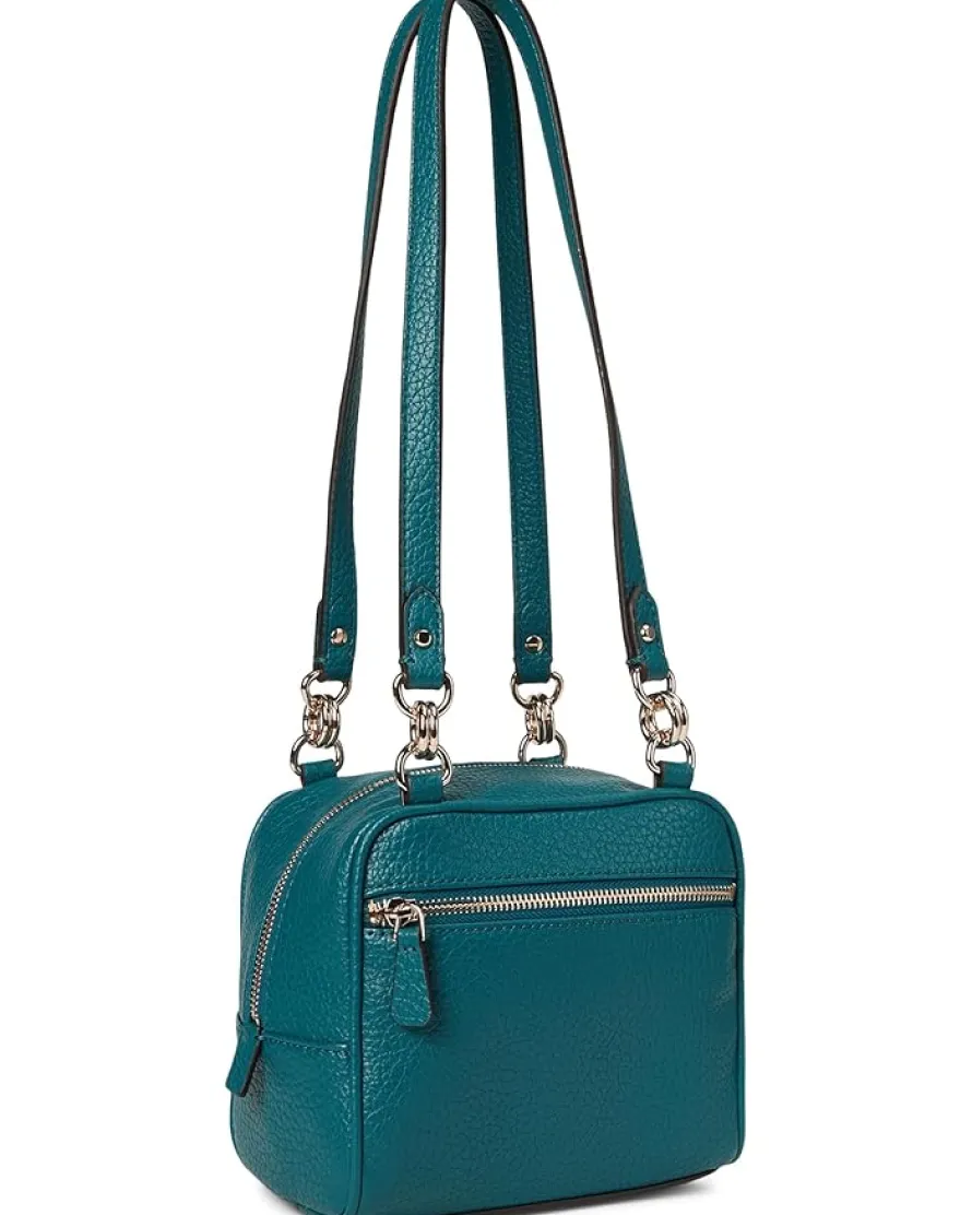 - The GUESS® Marsha Box Satchel offers a perfect blend of modern lines and classic, enduring charm. Crafted in eco big grain PU with a smooth polyester lining, this statement piece redefines everyday elegance. Its structured box silhouette exudes confidence, while the three spacious compartments and pockets keep your essentials smartly organized. The zippered closure ensures security with style, and the detachable crossbody strap offers versatile wear. Carry it by the top handle for polished appeal or sling it crossbody for hands-free ease.