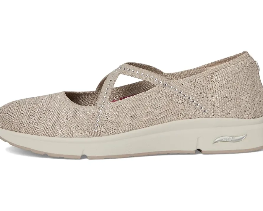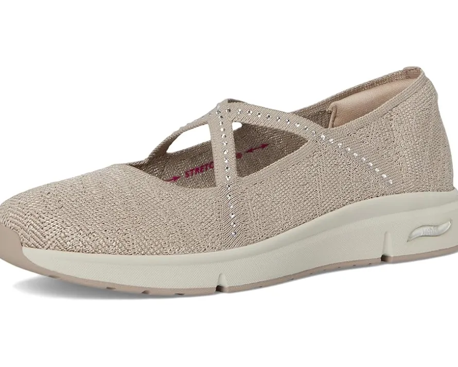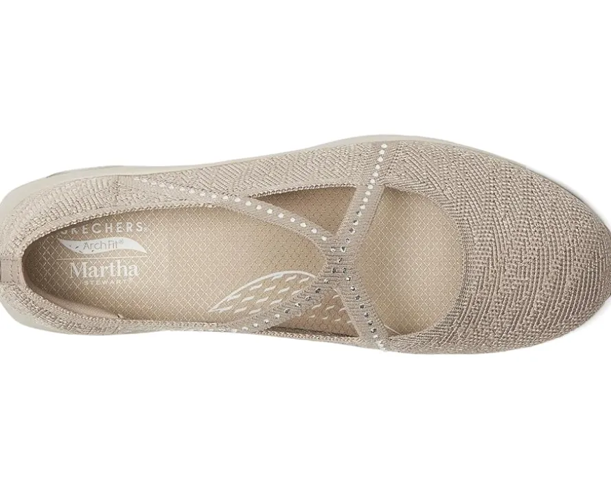 - Celebrated lifestyle expert, Martha Stewart, delivers her one-of-a-kind touch to these SKECHERS® Martha Stewart Arch Fit Living – Meadow Walk shoes. A part of the Skechers x Martha Stewart collaboration, these Mary Jane shoes feature a recycled knit mesh upper with rhinestone embellishments and a removable Arch Fit insole with podiatrist-certified arch support. Their footbed helps mold to your foot to reduce shock and increase weight dispersion, while the Stretch Fit design provides socklike comfort. They are crafted with 100% vegan materials. Lounge about in laid-back comfort with these slip-on shoes.