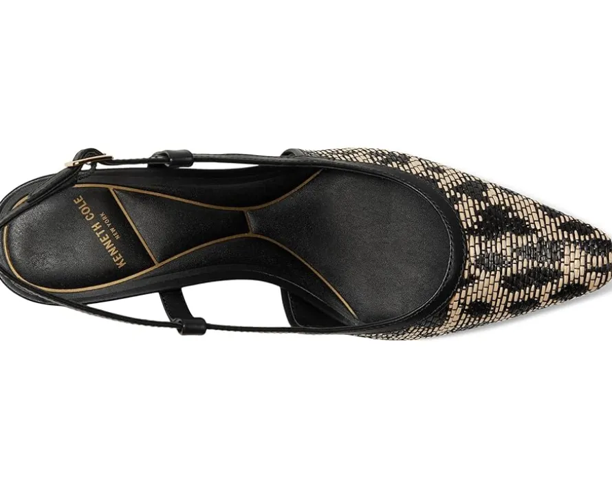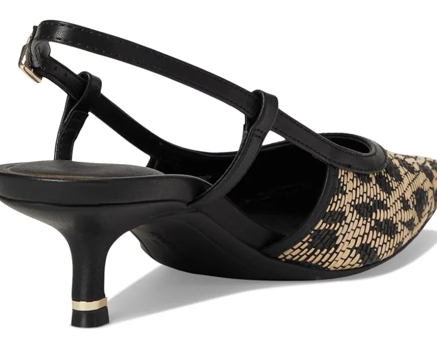 - Slingback strap with adjustable buckle closure.