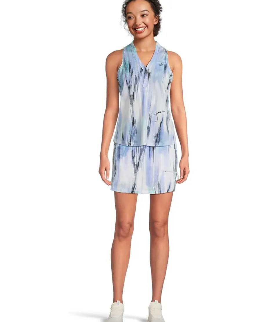 - Own the look wearing the classic Jamie Sadock® Matrix Print Sleeveless Top. Made using Cooltrex® Performance Fabric, this top features mandarin collar with V- neckline, sleeveless style, classic fit, modern, and tasteful design.