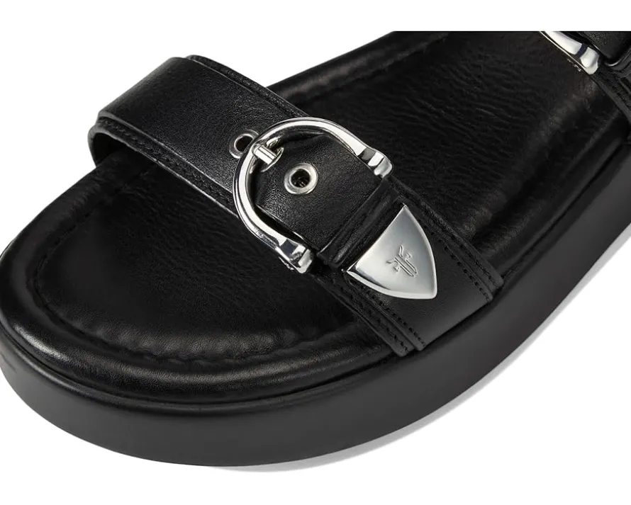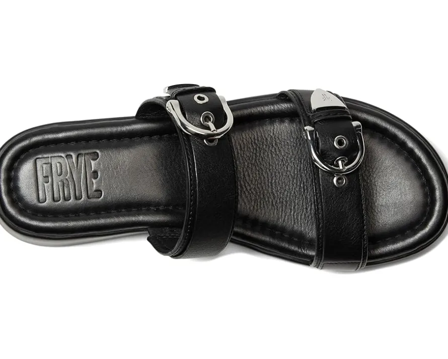 - The Frye® Maya Buckle Sandals are crafted with a soft, natural full-grain leather upper and a soft, cushioned EVA construction, adding sophistication and comfort to any outfit. Featuring elegant and simple styling, this warm-weather essential showcases adjustable leather straps with buckle closure for a customized fit. These slide sandals are made of a foam insole and leather lining.