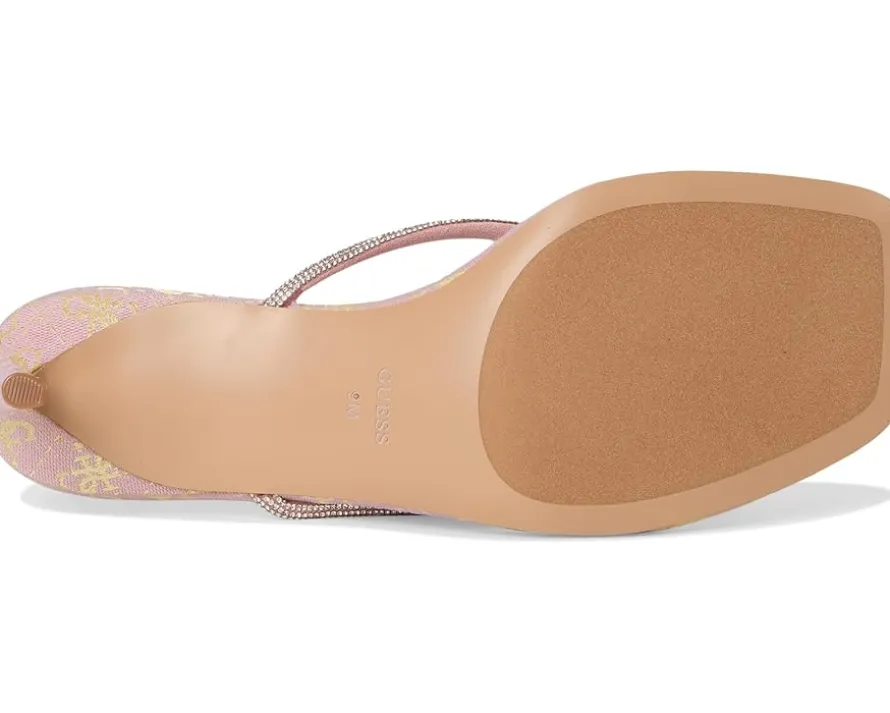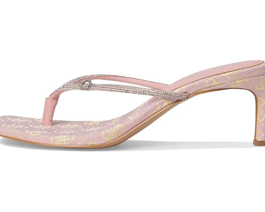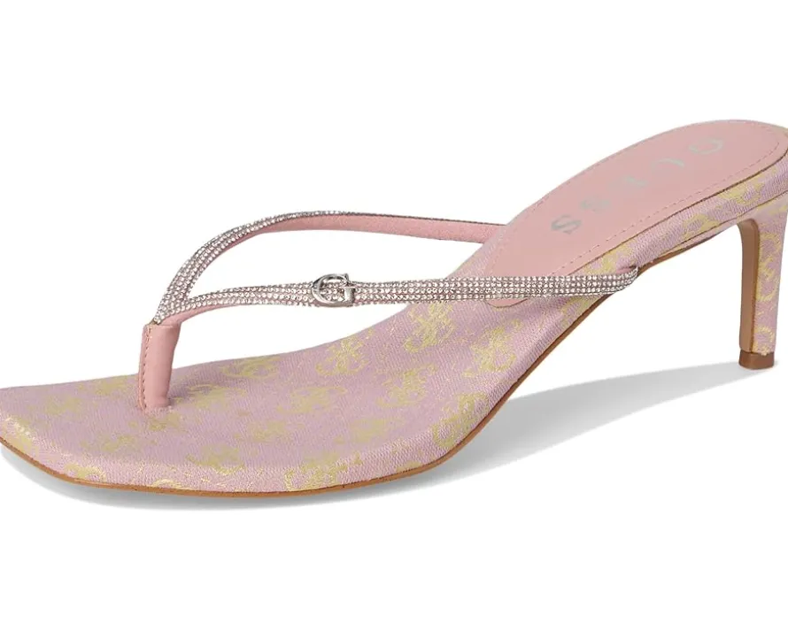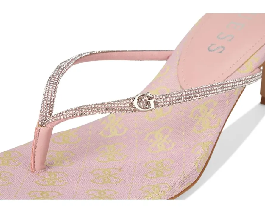 - The GUESS® Mayan is your ultimate go-to for chic, effortless glamour. Featuring a rhinestone-embellished thong strap and a sleek kitten stiletto heel, this slip-on style brings instant sophistication to any outfit. Crafted with a rubber upper, PU lining, and synthetic rubber outsole, it offers lightweight comfort and durability while keeping your look on point. Perfect for brunches, date nights, or evening soirees, the Mayan transitions seamlessly from day to night, giving your wardrobe that elevated touch you’ve been craving. Its playful shimmer catches the light, drawing attention wherever you go, while the easy slip-on design ensures no-fuss elegance.