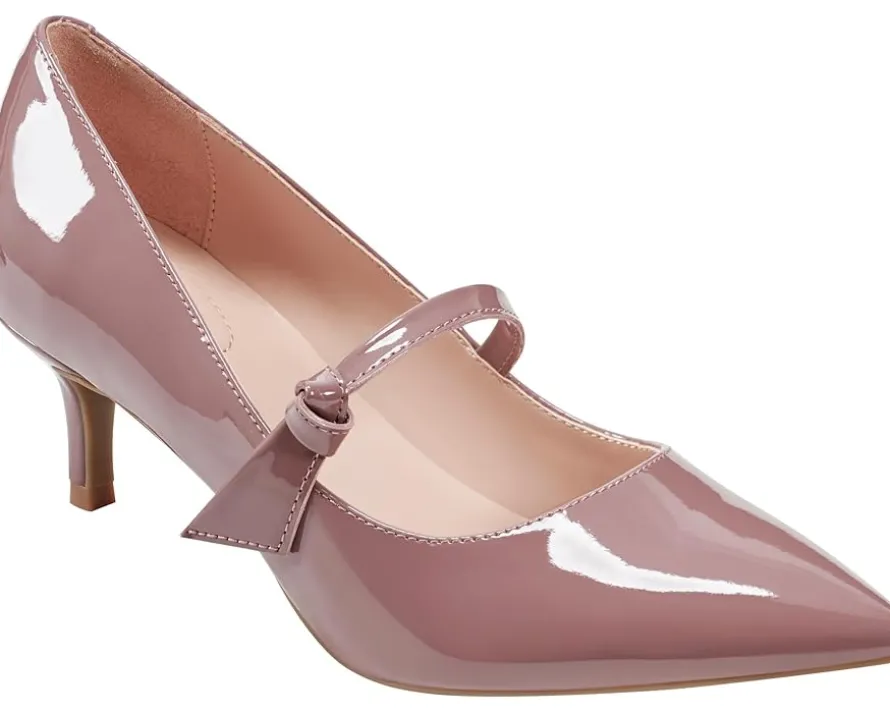 - Knotted bow accent on the midway strap simply adds to the modern yet sleek design of Bandolino® Medley Pumps. The pull-on footwear features polyurethane upper with kitten heel and low-top, pointed toe silhouette.