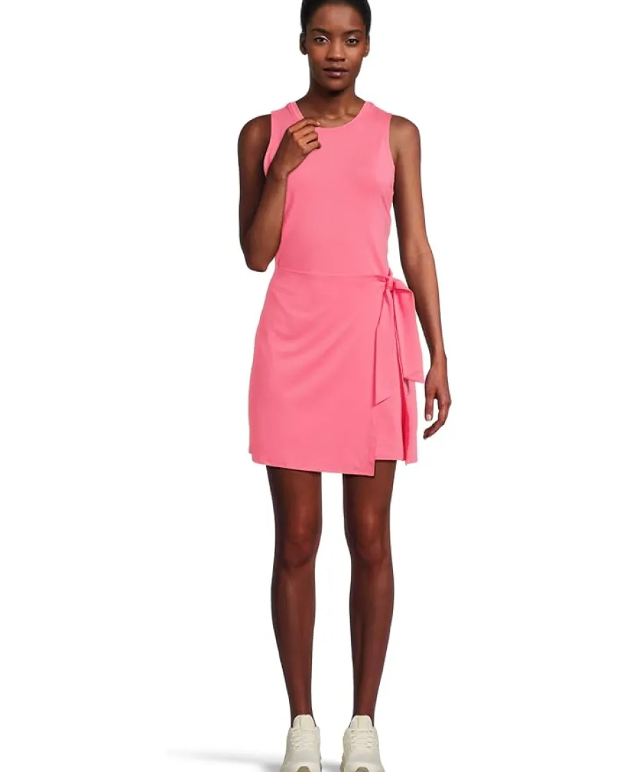 - No matter the invite – coffee shop, morning walk, quick lunch between meetings – you’re dressed. Sleeveless, with a super-flattering wrap skirt, made of the bouncy, gently-sueded jersey fabric fans are loving.