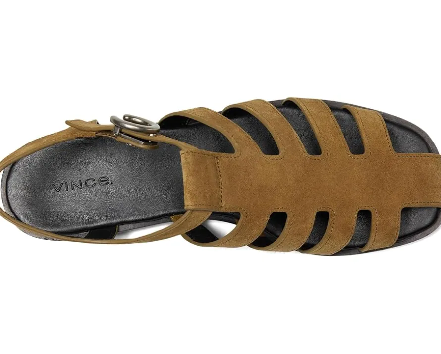 - The Vince® Melina is a modern interpretation of the classic fisherman sandal, crafted from supple suede and finished with an adjustable buckle closure to hug the foot just right.