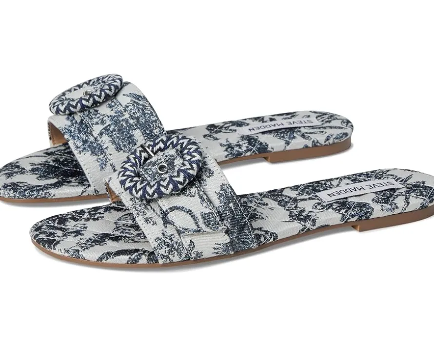 - Casual and chic, the Steve Madden® Merla Sandals are a must-have for everyday wear. The open toe, slip-on style sandals feature a cotton upper, synthetic rubber lining, and comfortable rubber insole. The decal on the strap adds a touch of elegance to your step.