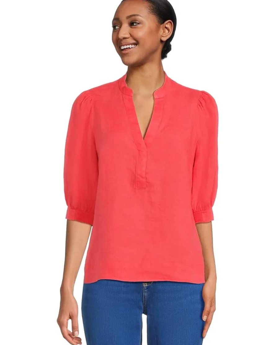 - Be comfortable and stylish in the Lilly Pulitzer® Mialeigh Elbow Sleeve Linen Top. Effortlessly chic, its airy fabric drapes gracefully, while the notch neck and half placket add a touch of elegance. The pull-on style ensures convenience, while the elbow-length puff sleeves exude timeless charm.