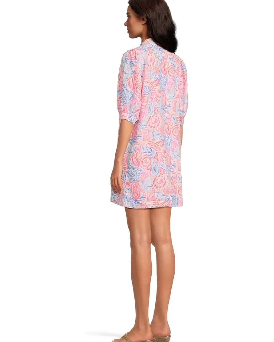 - Give your warm weather wardrobe a playful twist in the breezy Lilly Pulitzer® Mialeigh Elbow Sleeve Linen dress. Featuring a pull-on style in an easy fit, stand collar, half placket, and elbow-length puff sleeves. Pair it with your favorite chic sandals to elevate your casual style.