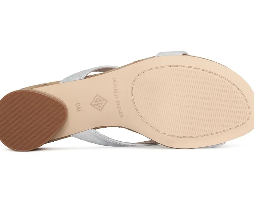 - The Donald Pliner® Mida sandals are a true work of art with their distinctive design. These strappy sandals sit on cork-covered barrel block heels accented by electroplated detail and have sculptural soft straps. The supple leather upper, memory foam insole, and flexible leather outsole make them incredibly comfortable as well. Cushioned and stylish, these sandals come with a leather lining that offers all-day comfort. Make a confident entry into any party or event wearing these heeled sandals.