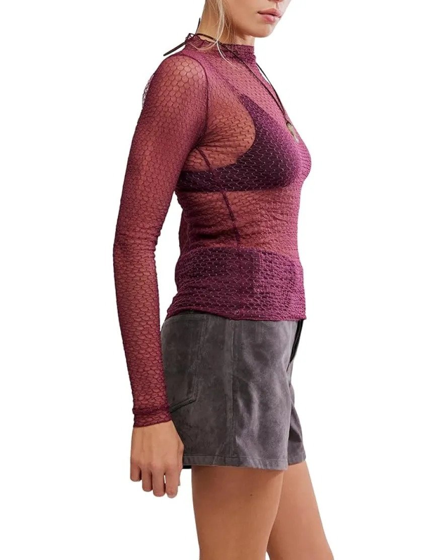 - Crafted in a sheer mesh fabrication and a semi-fitted silhouette, the Free People™ Minding My Business Top has got the perfect textured style with a ruffled mock neckline for a femme touch. The full-length top features patterned finish and extra-long fitted sleeves. Wear solo with your fav bralette or pair under your go-to tees and tanks.