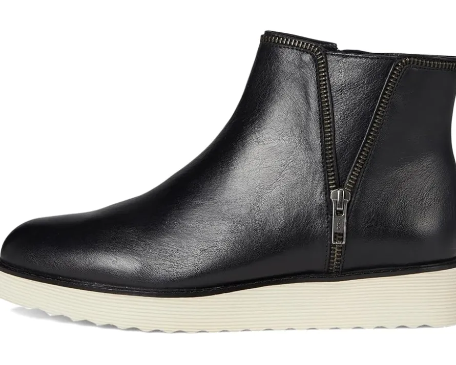 - Charm meets elegance with this Johnston & Murphy® Mitzi Zipper Bootie featuring a low-top profile and soft almond toe silhouette. The footwear has suede upper construction with skeletal leather and microfiber lining, and cushioned, leather-covered footbed for all-day comfort.