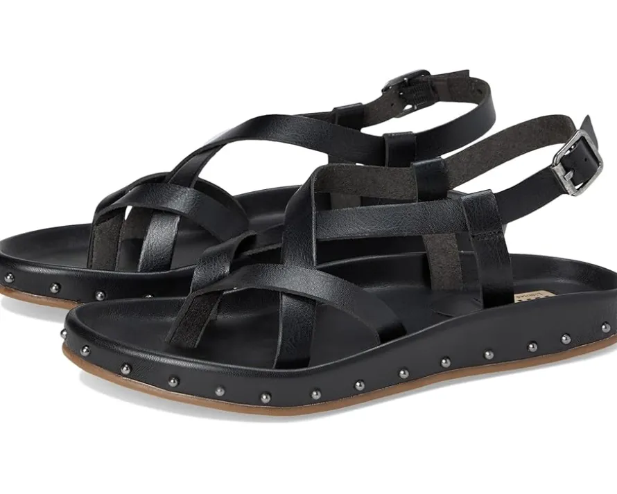 - The MIA™ MLE-Zurie-S flat sandal boasts a sleek design with adjustable buckle closure at the slingback. With studded adornments, the footwear features an open almond toe silhouette.