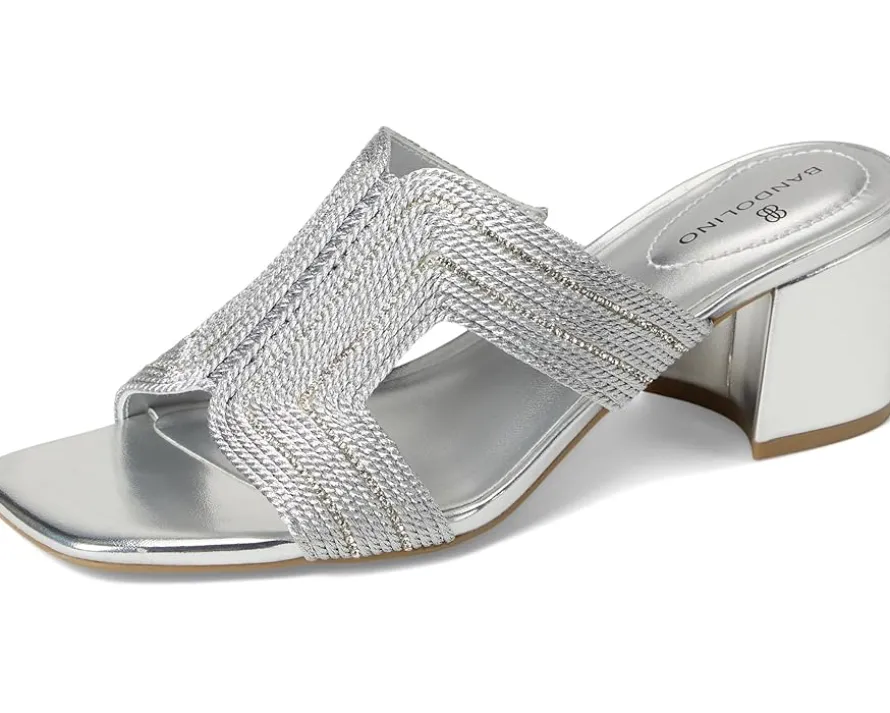 - The Bandolino® Molane sandals add instant style to any outfit. These dress sandals feature mid-block heels, bow detailing, and a modern square toe design. They are made of a polyester upper, foam insole, and polyurethane lining. A mix of timeless design and uncompromising quality, these heeled sandals are the perfect wardrobe staple!