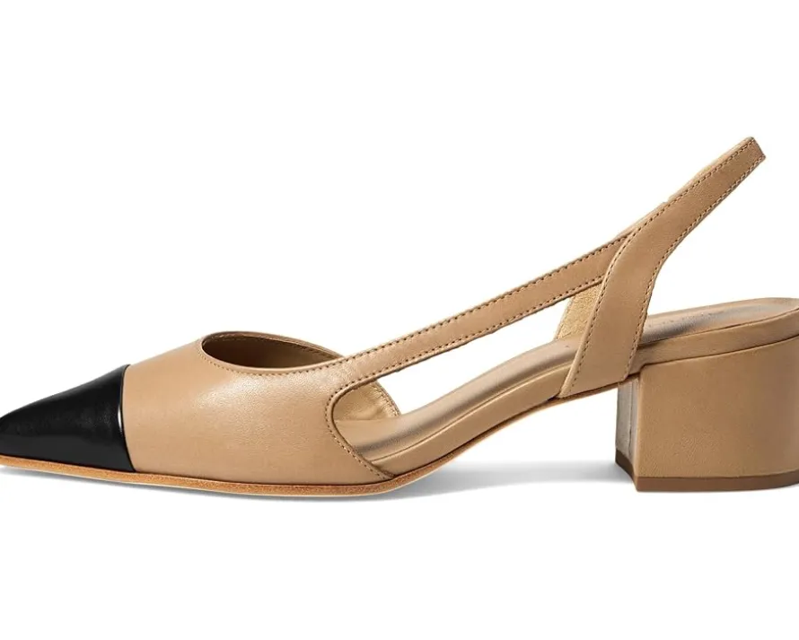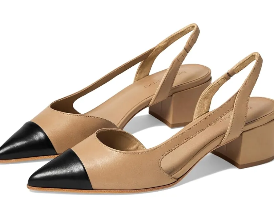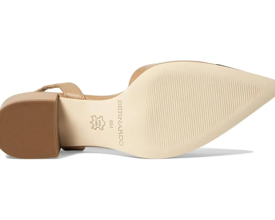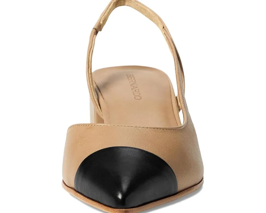 - Move into style adorning Bernardo® Monroe Leather Slingback Shoe, blending trendsetting elegance with all-day comfort. Featuring a sleek pointed toe and a chic two-tone design, Monroe adds a twist to your pump game, effortlessly transitioning from work to happy hour. Crafted with premium materials, its luxurious leather lining and outsole ensure a plush feel with every step. The sturdy block heel offers stability, perfect for long days on your feet.