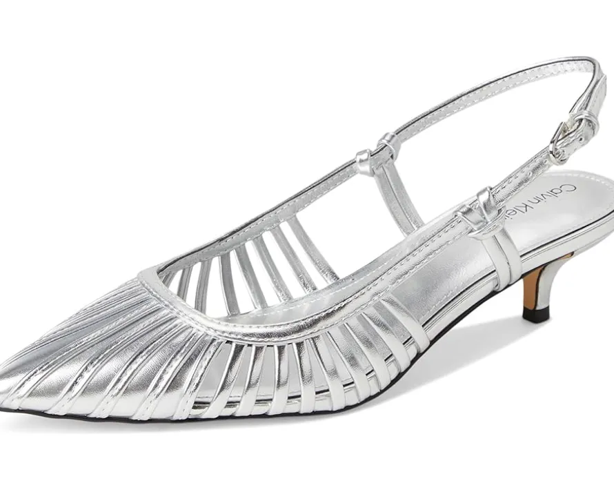 - A classic night out silhouette, the Calvin Klein® Movella heels are the perfect wardrobe staple. These heeled sandals are made of a faux leather upper, cushioned insole, and polyester lining. They feature an adjustable slingback strap, pointed toe shape, and kitten heels. These chic sandals will pair with any outfit.