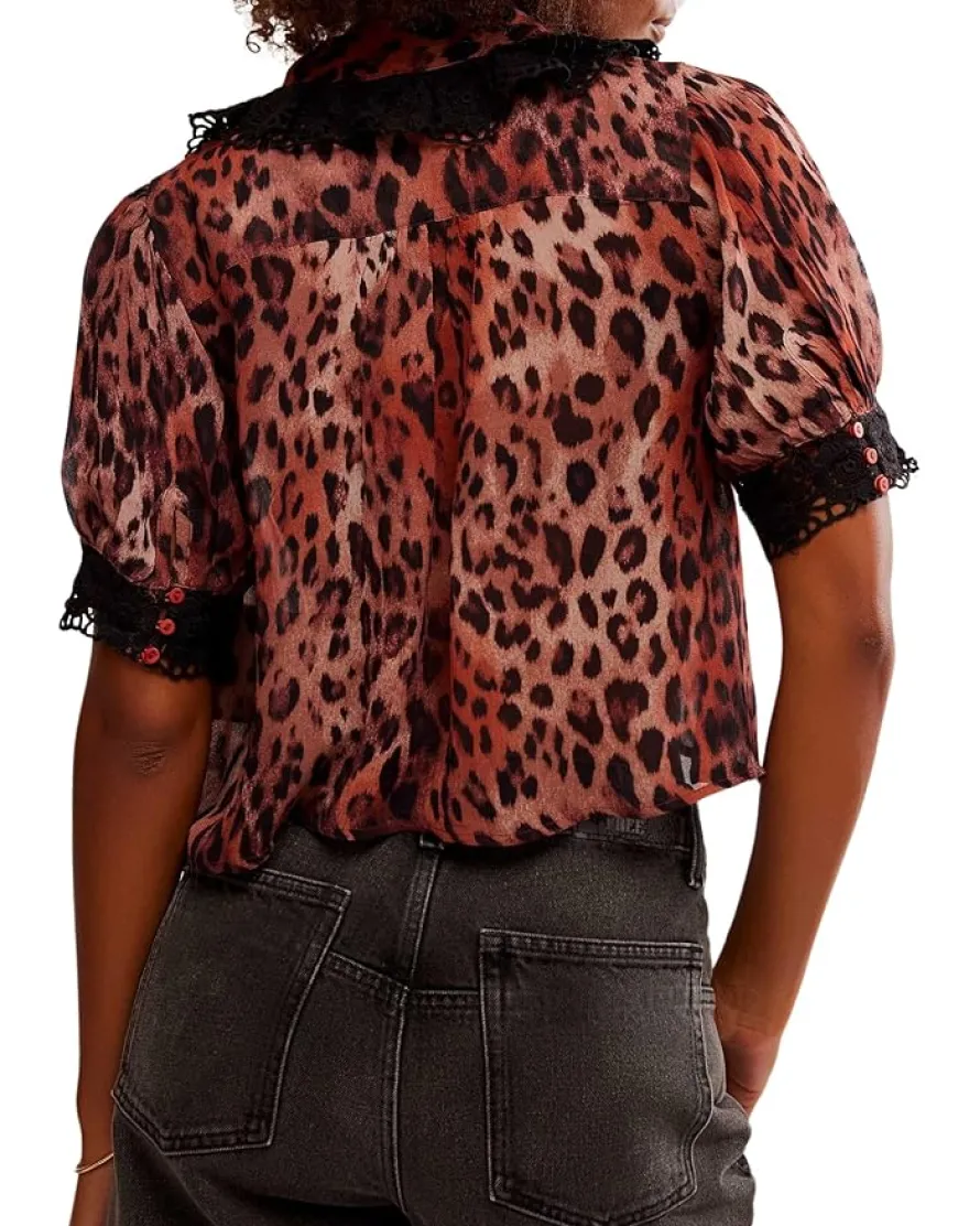 - A classic lace-trim collar sets this Free People™ My Love Blouse Printed top apart from all other styles. It features a cropped silhouette, short puffy sleeves, and buttoned front closure.