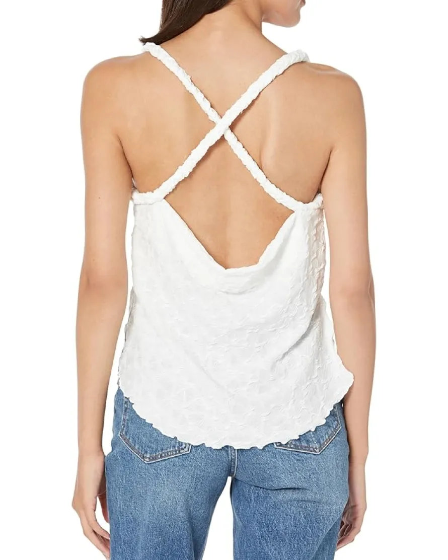 - Featuring a cowl neckline and braided shoulder straps, the Free People™ Mykonos Tank brings a fantastic style with an allover jacquard embroidery detail. It has a relaxed fit silhouette with crisscross straps on the open back.
